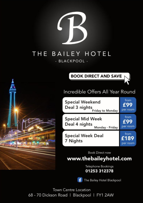 Book direct with the Bailey Hotel for 7 Nights from just £189 for a Large Double Room!